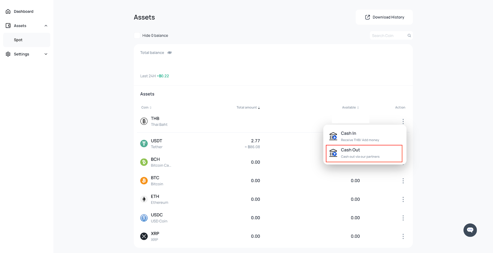 2. Click on the little 3 dots action row beside column THB > Cash-out