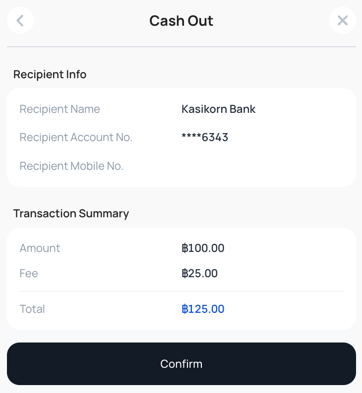 - Once completed, your instant cash-out request will be processed.