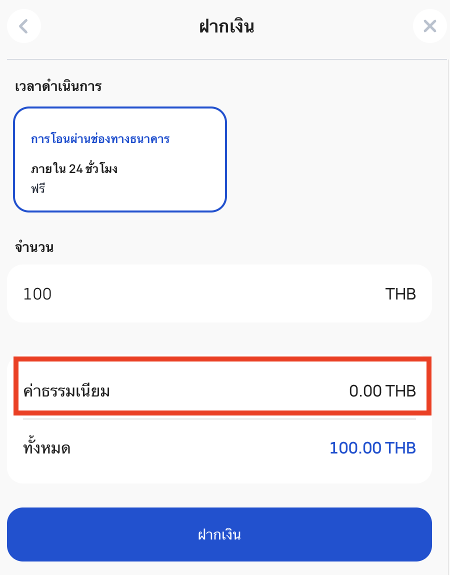 ฟรี ค่าธรรมเนียมในการฝากเงินบาทที่ coins.co.th ทุกรายการ