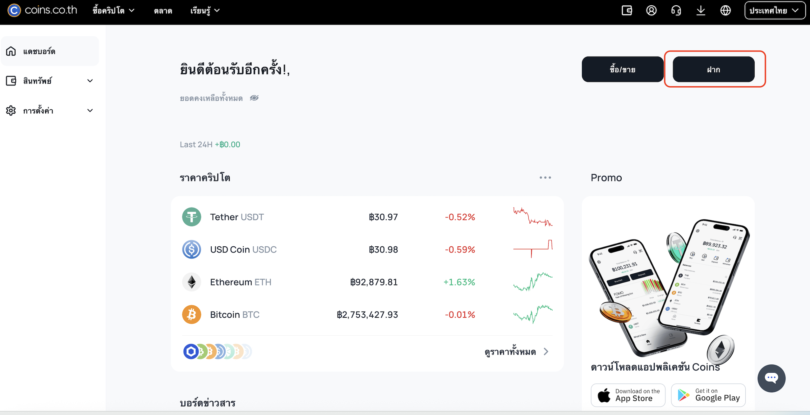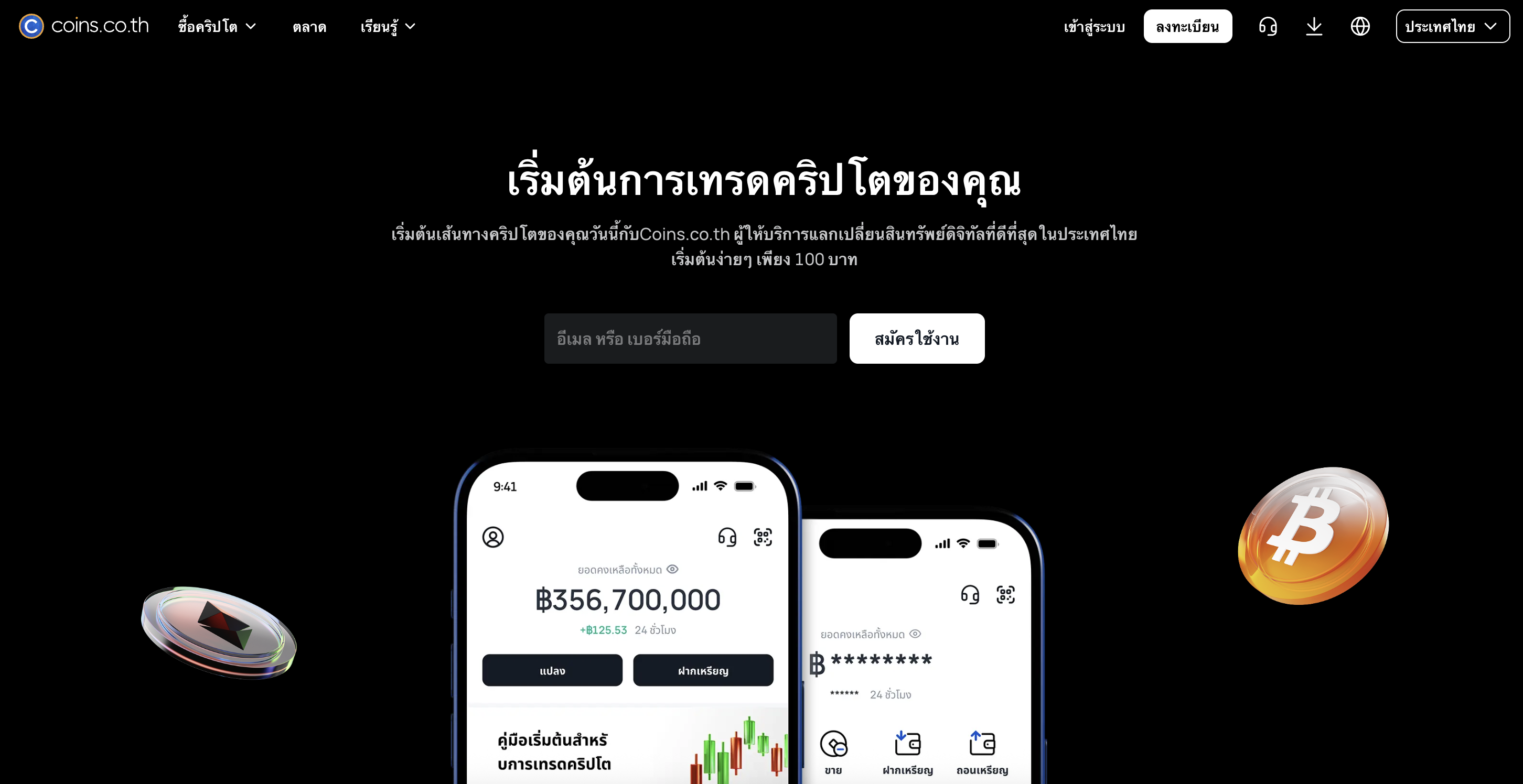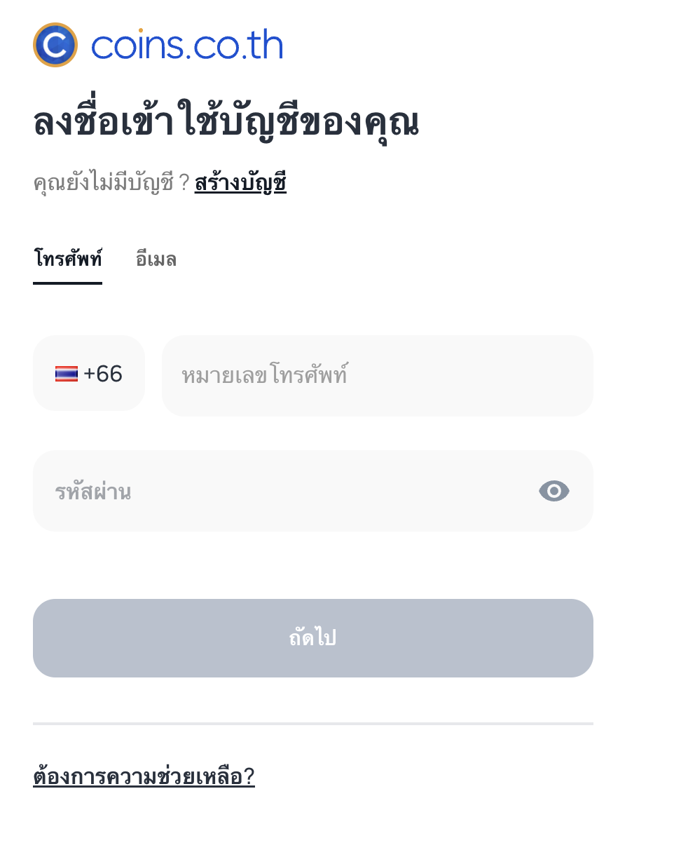 ไปที่เว็บไซต์ Coins.co.th และคลิก “เข้าสู่ระบบ”